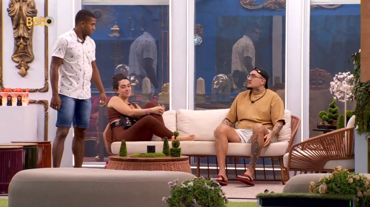 Davi e MC Bin Laden conversam brevemente horas antes da Eliminação desta quinta-feira (4). O baiano chega na varanda da casa e deseja "boa sorte" para o funkeiro, que retribui o gesto. Os dois se enfrentam no 17° Paredão do BBB 24.