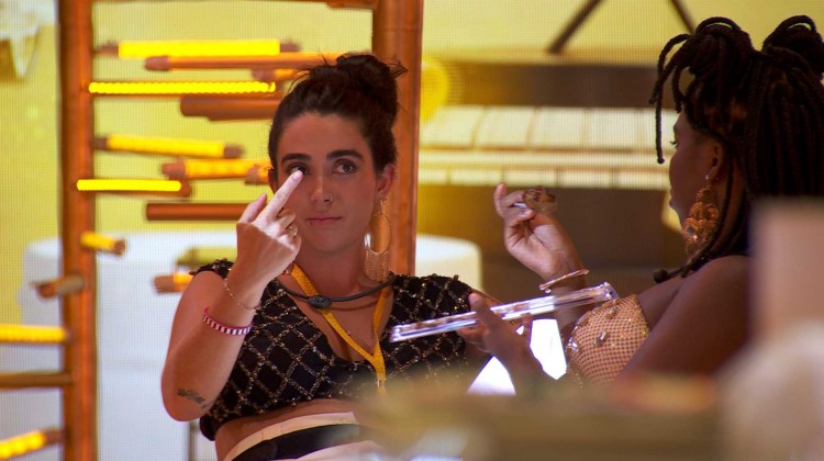 Em papo com sisters durante a festa, Giovanna desabafa sobre MC Bin Laden, com quem já teve um romance dentro da casa do BBB 24 e que nesta sexta (15) colocou Na Mira do Líder. A dona da coroa da semana relembra quando o funkeiro ficou sem falar com ela e com outras pessoas na casa e diz que o brother quis sumir de sua vida. "Ele surta à toa", complementa Leidy Elin.