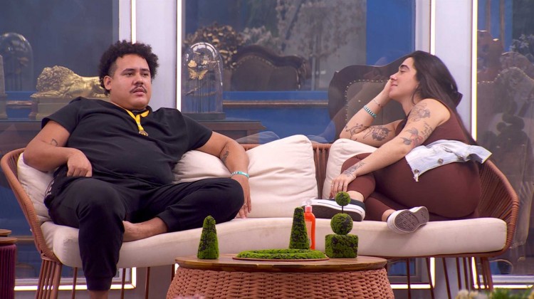 "Se tiver Prova do Anjo amanhã, se você ganhar o Anjo, vamos quebrar o Top 5 deles, hein", diz Lucas Henrique. "Aí o pau vai torar", afirma Giovanna.