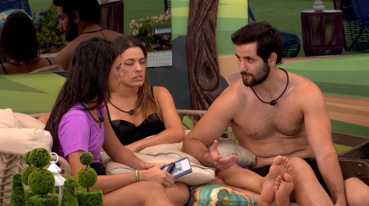 e conversam sobre trabalho na área externa do BBB 24 quando se aproxima para alertar as sisters. O gaúcho diz que com o fechamento do Quarto Magia, o Líder poderia captar alguma conversa no jardim da casa.
