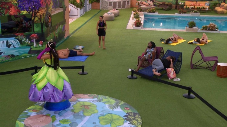 Na área externa, Fernanda cumpre o Castigo do Monstro, Lucas Henrique, Raquele e Leidy Elin fazem companhia para a sister.